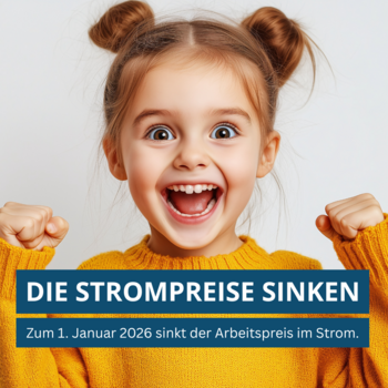 Zum 1. Januar 2026 sinkt der Arbeitspreis im Strom in allen Tarifen.
